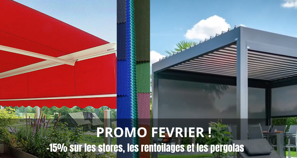 Profitez de nos promotions saisonnières sur les stores, pergolas, volets, carports ou toiles sur mesure.